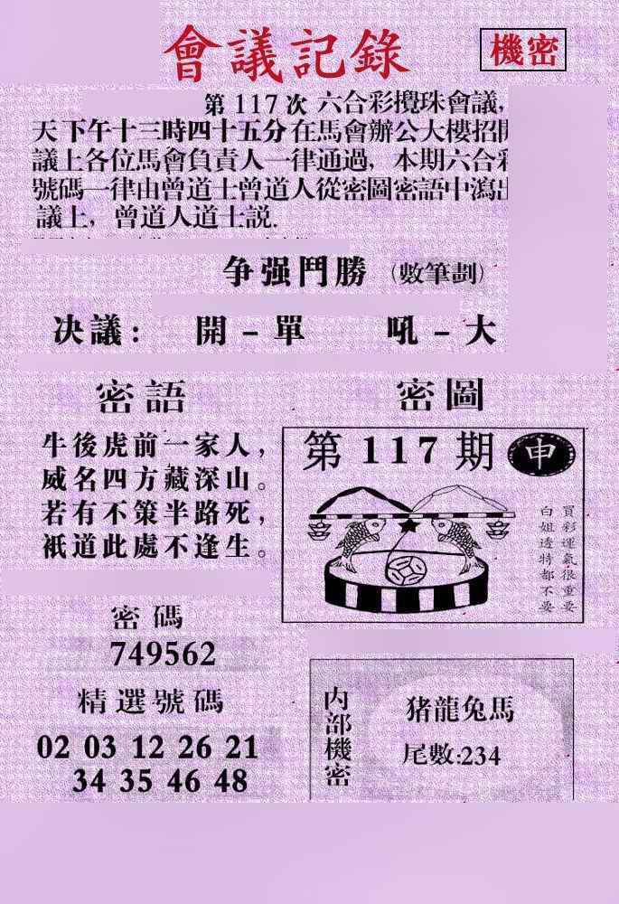 233 内幕玄机加大版A 234 内幕玄机加大版B 235 六合心经A 236 六合心经B