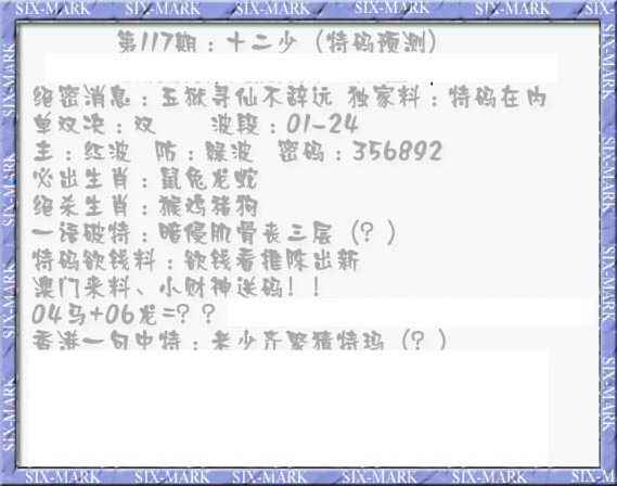 829 旺财三码 830 猫王二肖 831 马会快特A 832 马会快特B