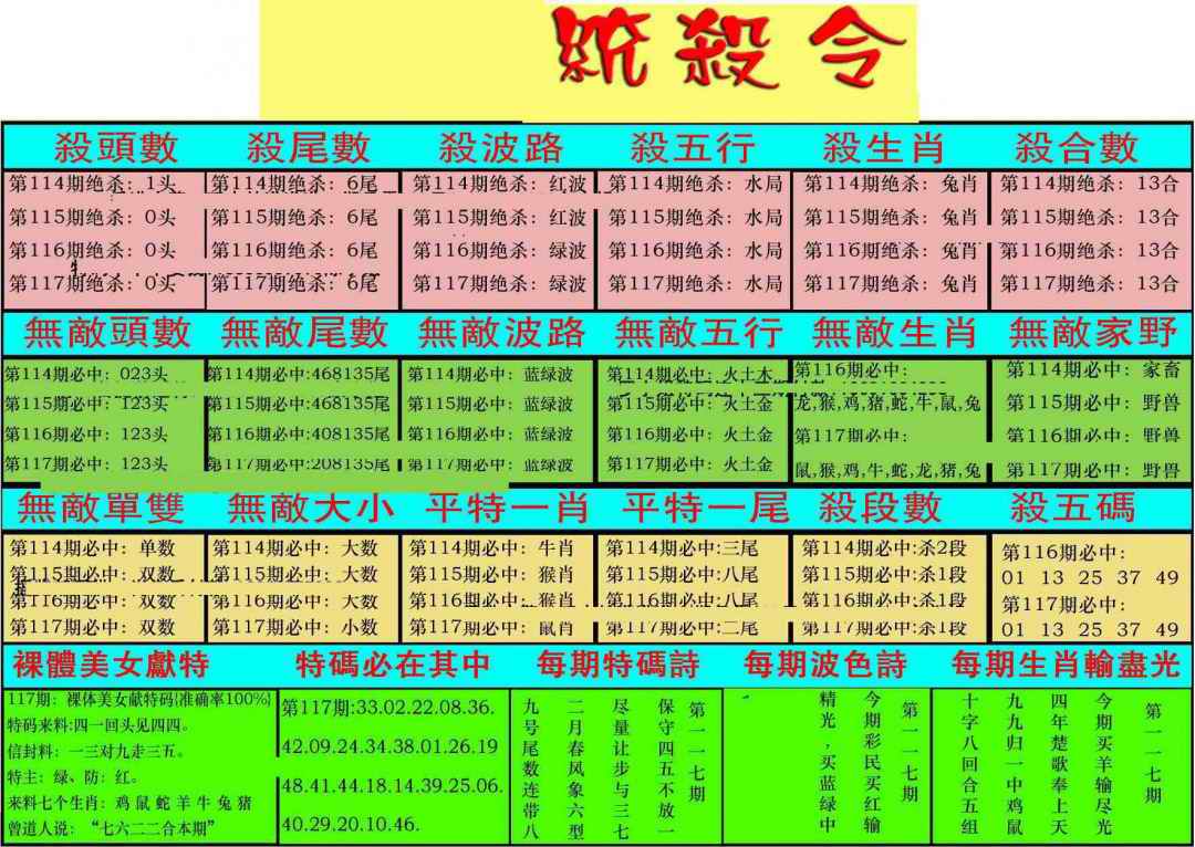 1659 一点红 1660 马经平特图 1661 杀杀杀A 1662 杀杀杀B