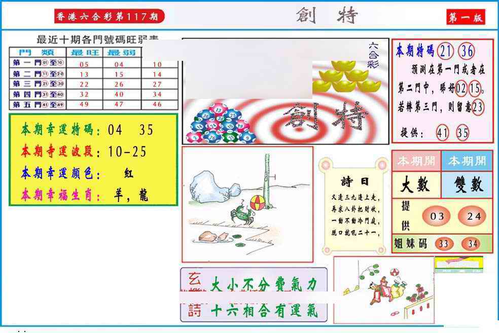 063 六合禅机A 064 六合禅机B 069 特 新 报A 070 特 新 报B